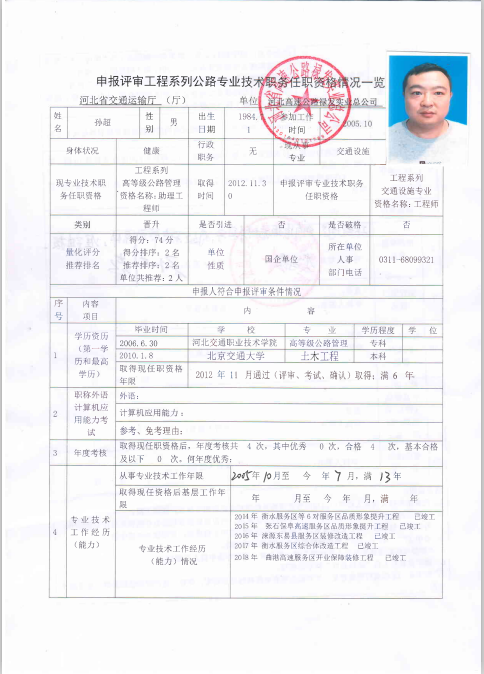 河北省高速公路禄发实业总公司专业技术职务评定公示