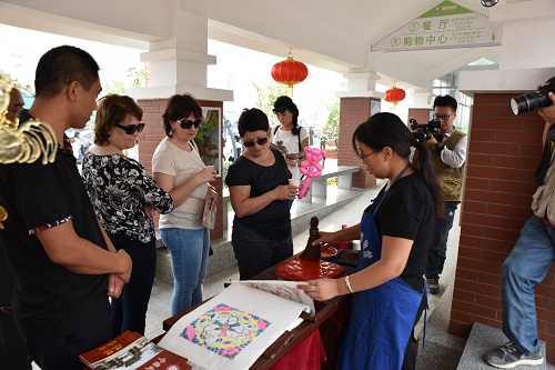 民俗表演+“小丑”串场:在涞源东服务区连廊,具有浓郁民俗气息的捏糖人、糖画、剪纸和年画展示活动吸引了不少过往游客,游客纷纷拍照留念,购买品尝;两个扮相“搞怪”的“小丑”时不时进行“特技”表演,与游客合影。